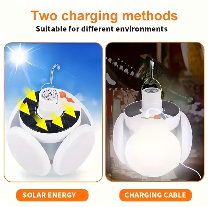 【Solar charging + USB charging】The usb camping light is rechargeable, no need to replace the battery. The top of the lamp is equipped with a solar charging panel, which can be charged during the day.